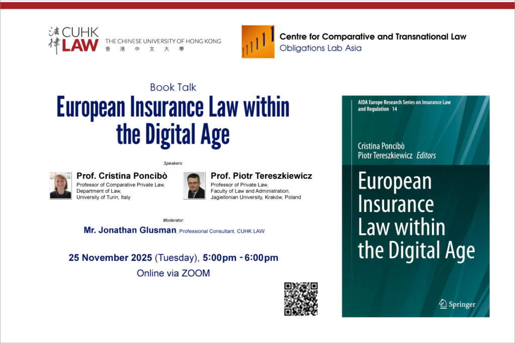 The talk will be delivered by Prof. Cristina Poncibò and Prof. Piotr Tereszkiewic via Zoom on 25 November 2025 at 5:00 pm (HKT).